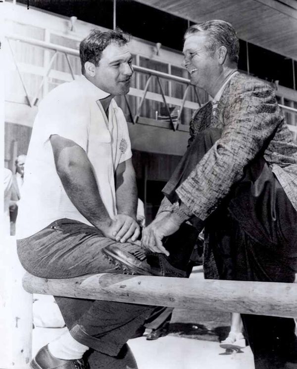 Jimmy Demaret grew up in Houston, where in 1920, he started caddying at the age of eight. He worked for fellow Texas Golf Hall of Famer Jack Burke, Sr., at River Oaks Country Club and moved from the caddie barn to the pro shop by the age of 14. His professional golf career started halfway into his high school career. Jimmy’s first tournament victory, the first of five straight Texas PGA Championships, earned him $25 in 1934. Thirteen years older than Jack Burke, Jr., (and having served as his childhood babysitter), Jimmy and Jack became long-lasting friends who combined for 47 PGA Tour victories and together created Champions Golf Club in Houston.